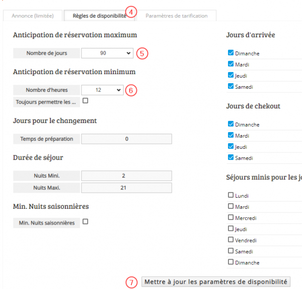 Cliquez sur l'onglet “Règles de disponibilités” 4