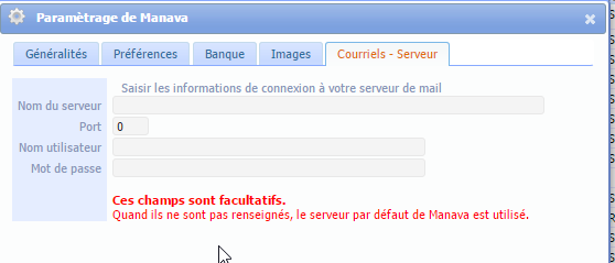 Note : pour que cette petite nouveauté technique fonctionne avec votre compte, supprimez les informations saisies éventuellement dans l'option "Options/Paramétrage de Manava/Courriels - Serveur"